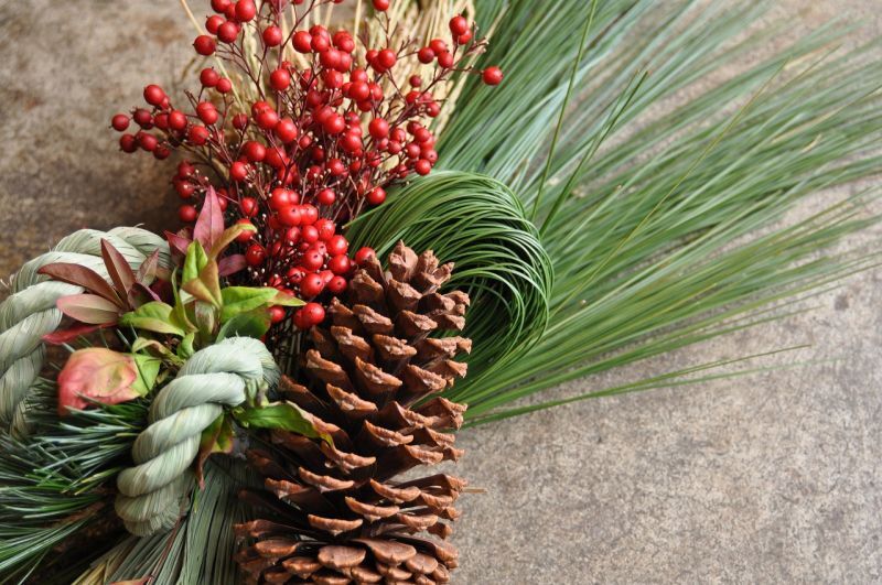 立派な大王松や稲、大きな松かさなどを合わせ、