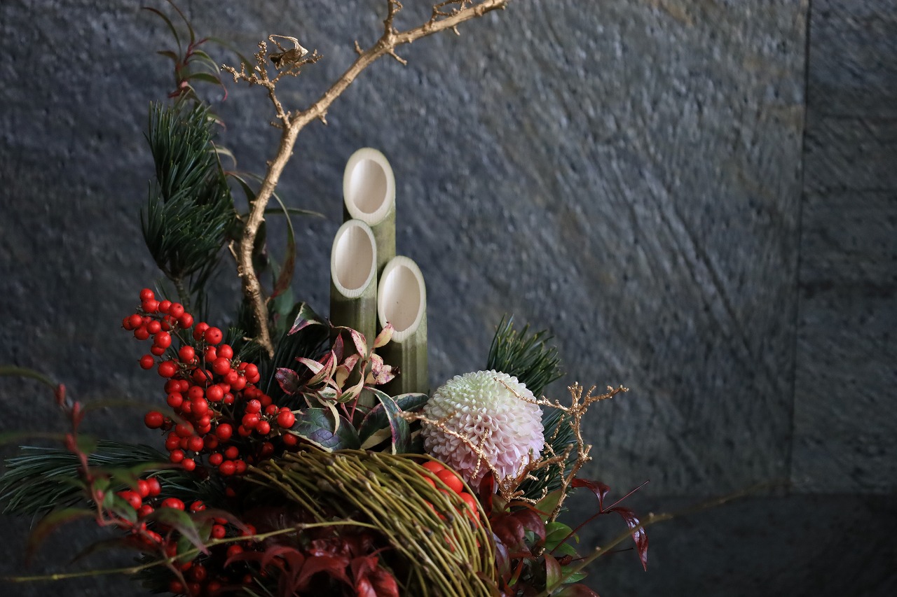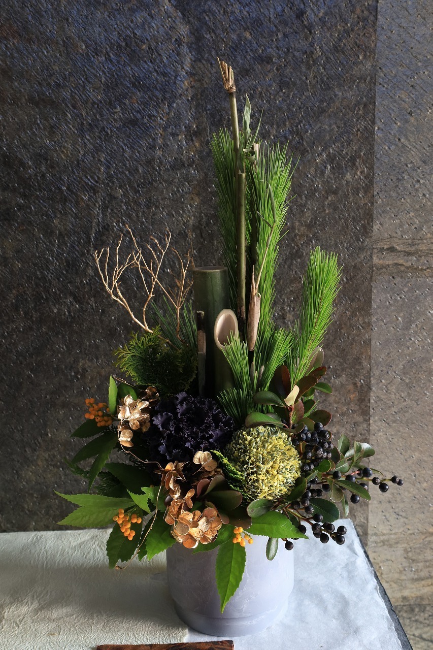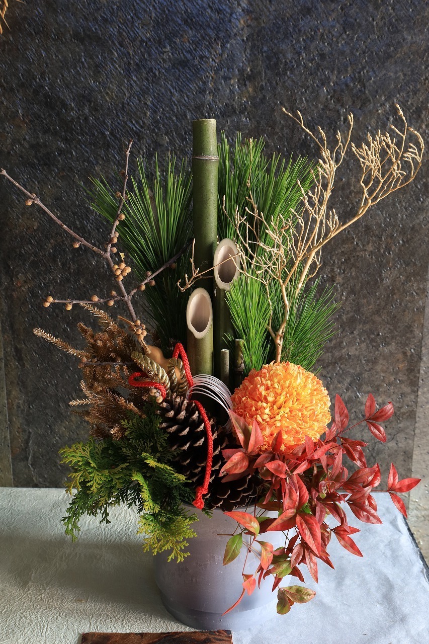 玄関先に置いている大きな門松を小さくアレンジしたものになっております。