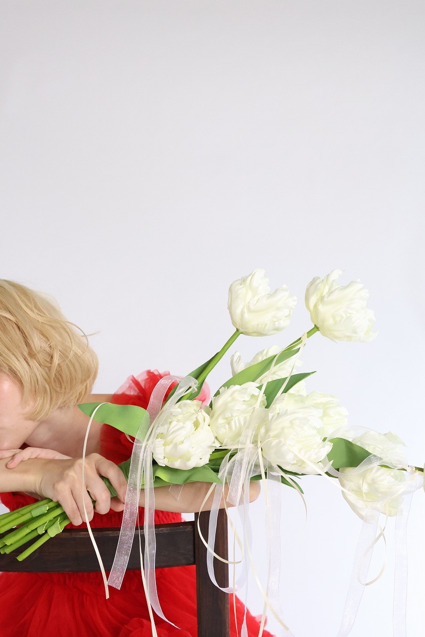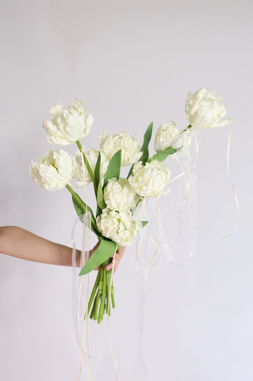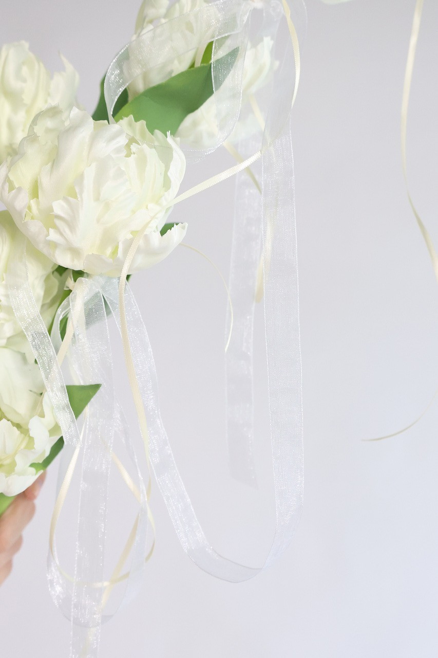 八重咲きチューリップのクラッチリボンブーケ