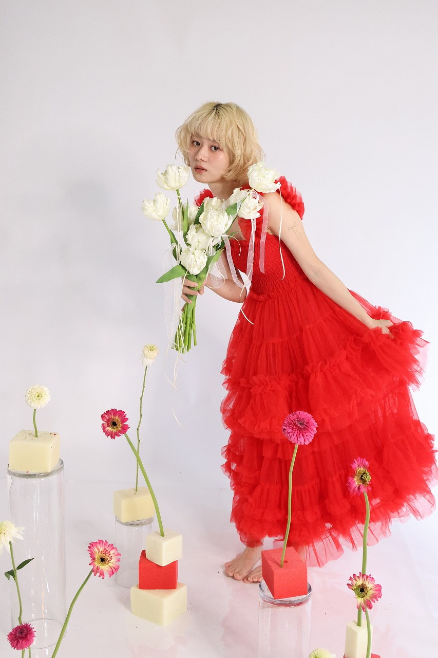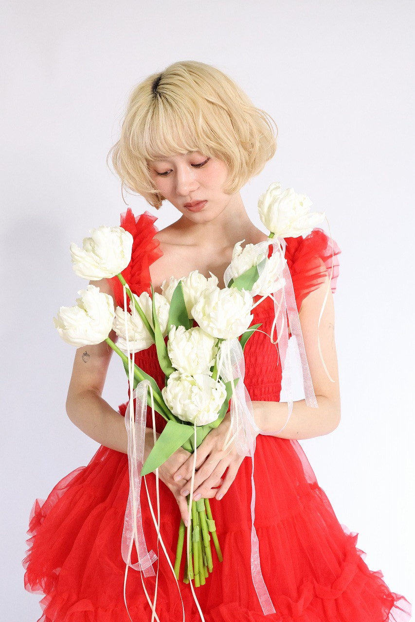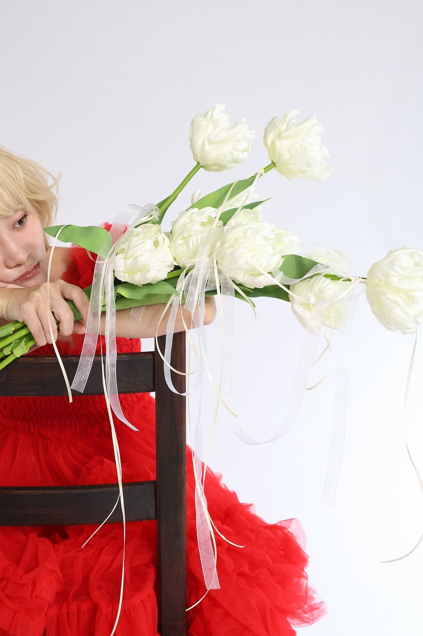 八重咲きチューリップのクラッチリボンブーケ