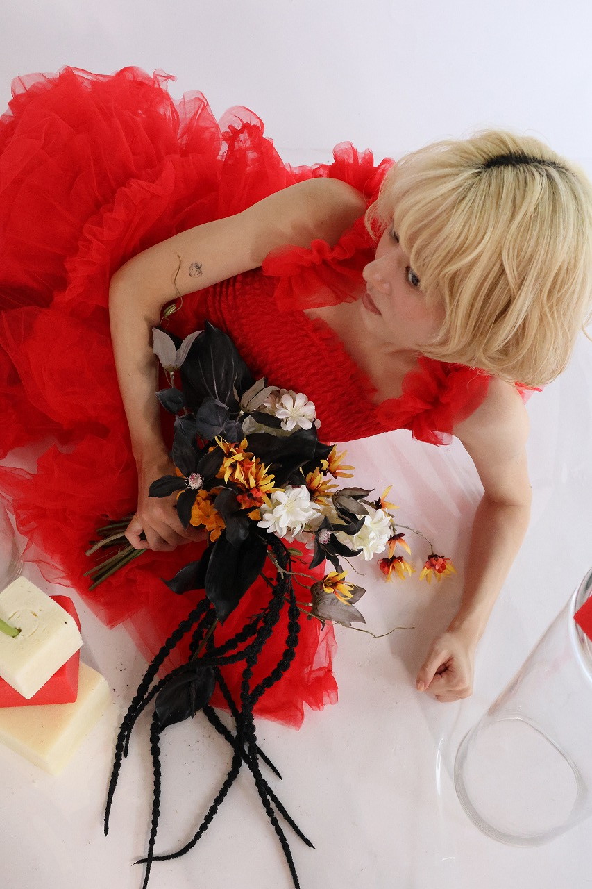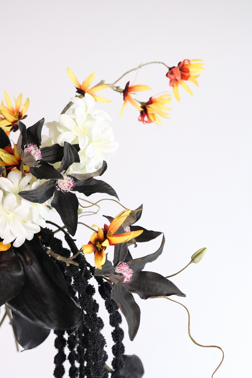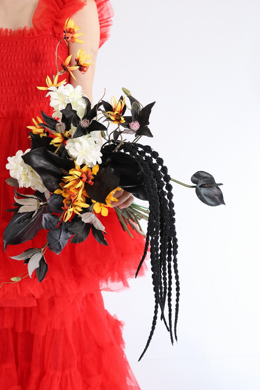ブラック&オレンジの個性派ブーケ