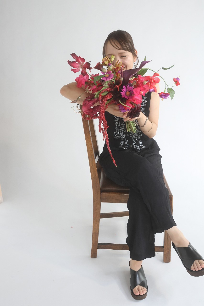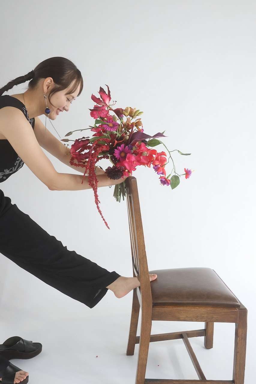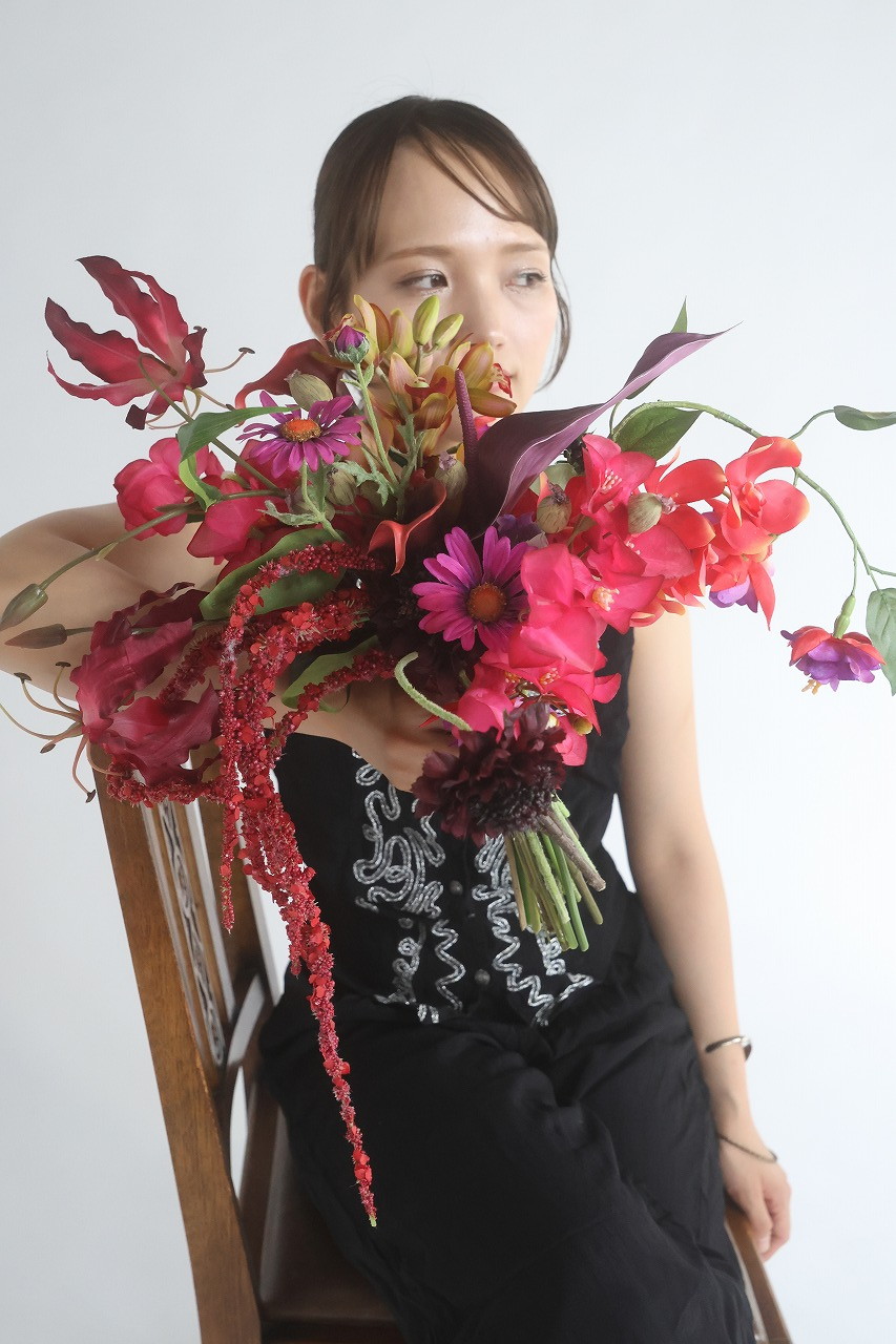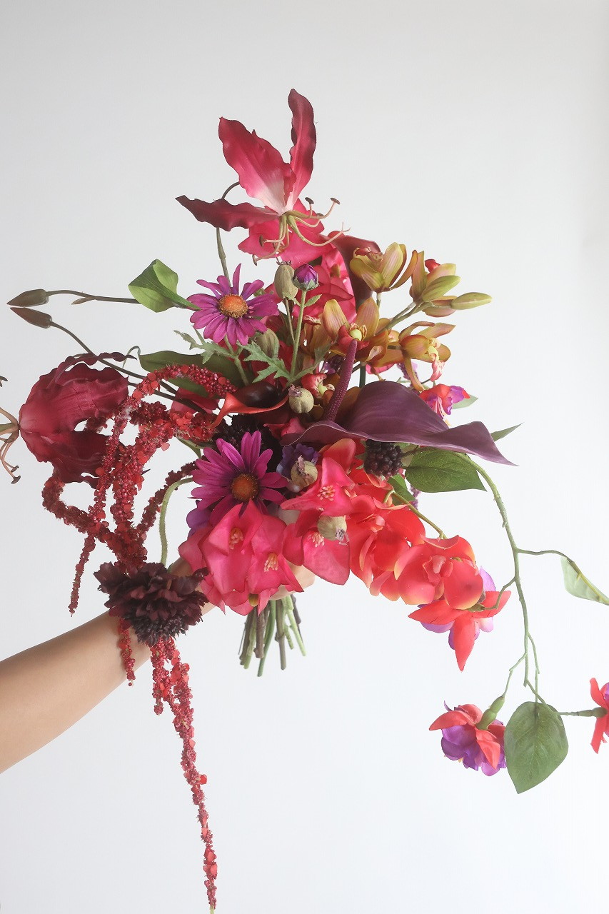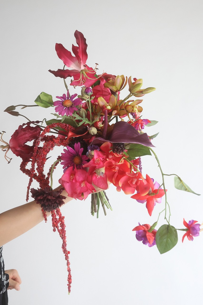 グロリオサとアンスリウムのゆらゆら個性的ブーケ
