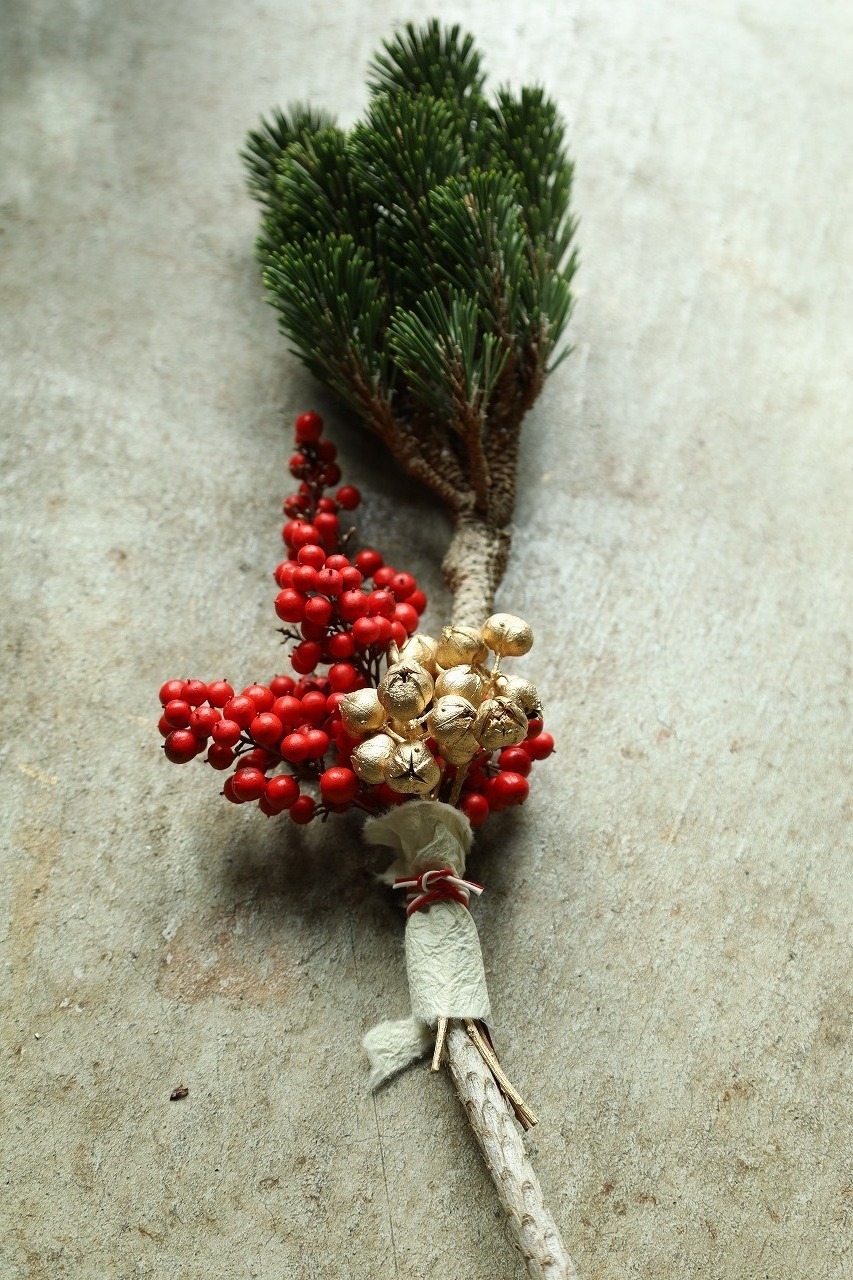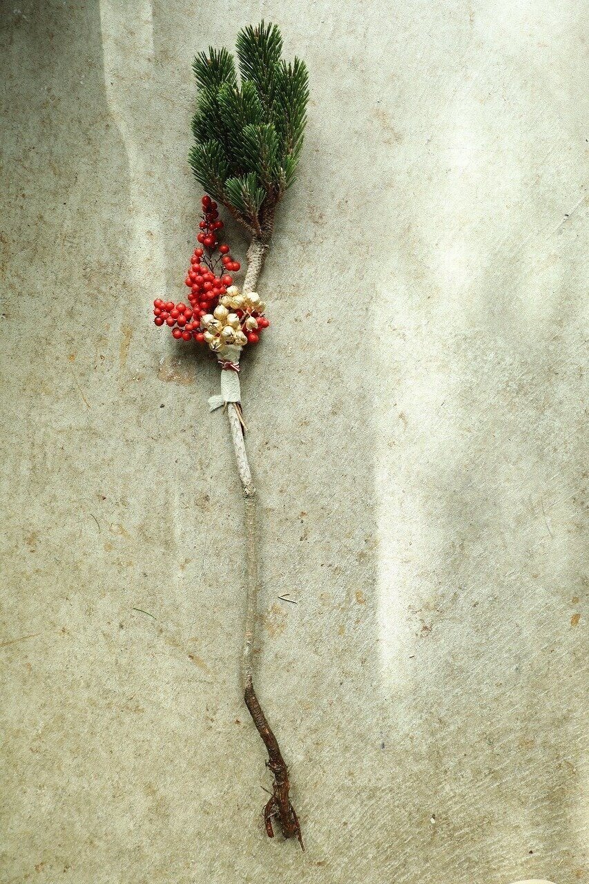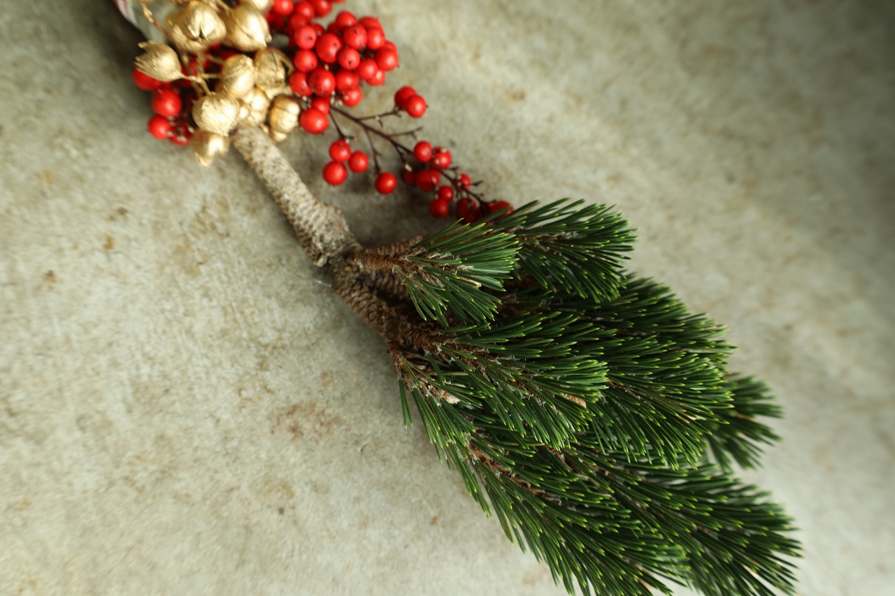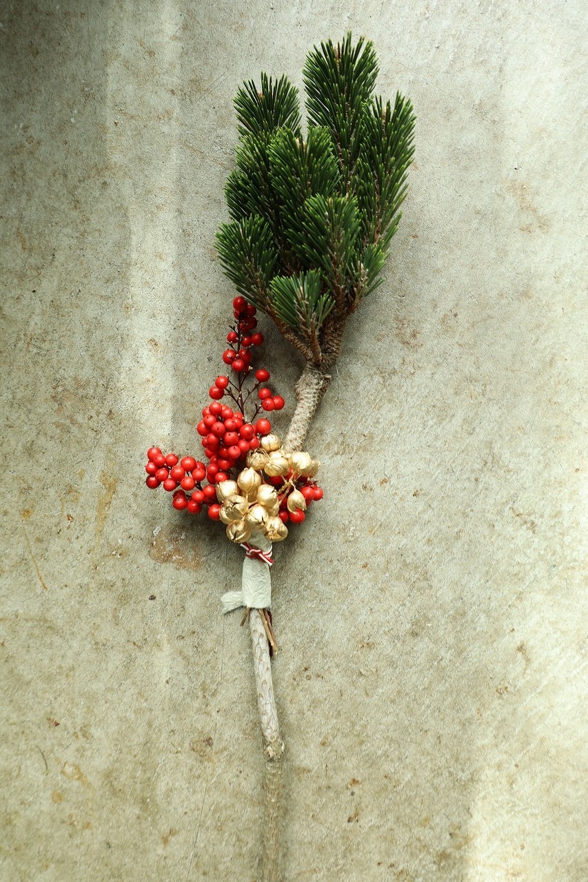 なんともカッコよい、根っこの付いた松をお飾りにしました!