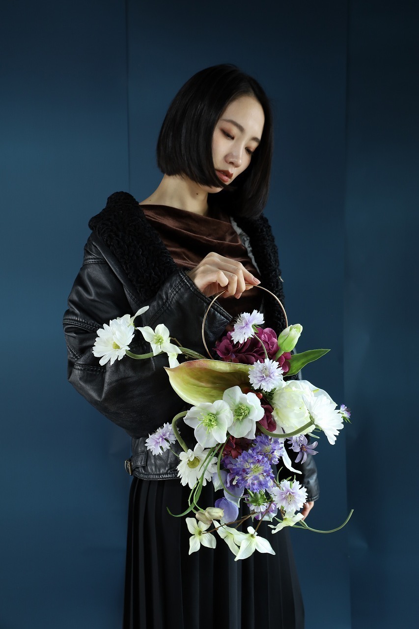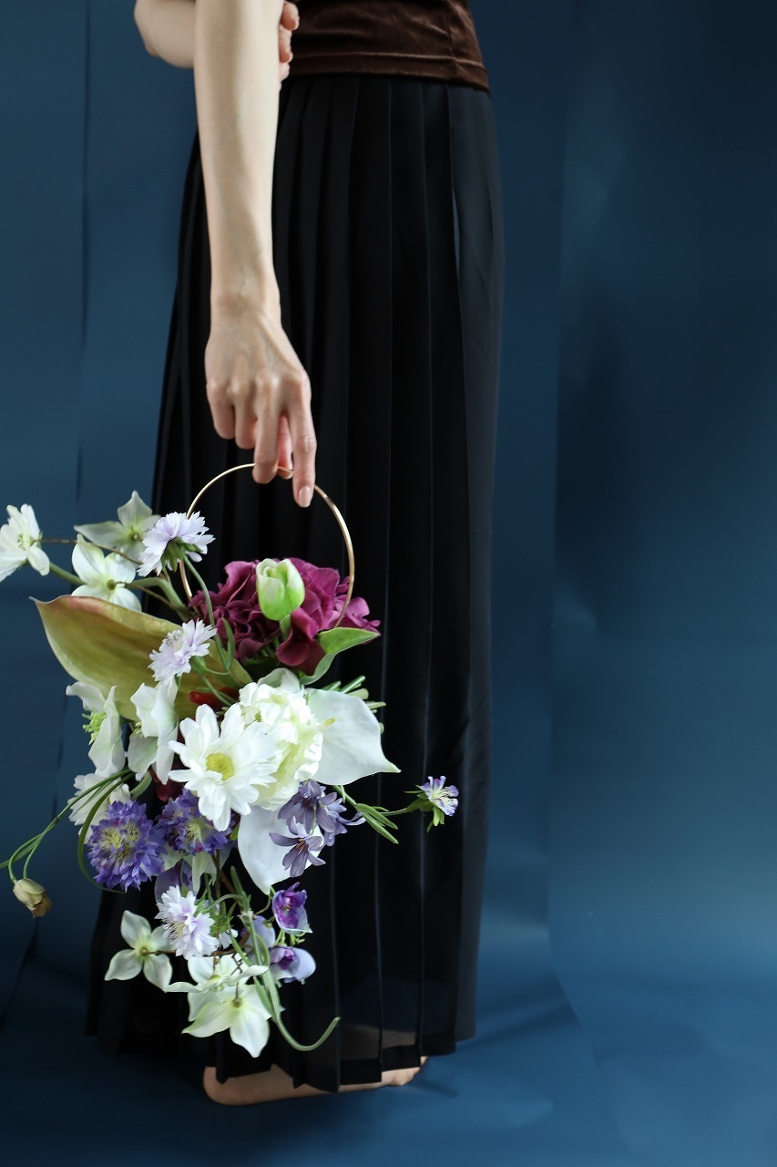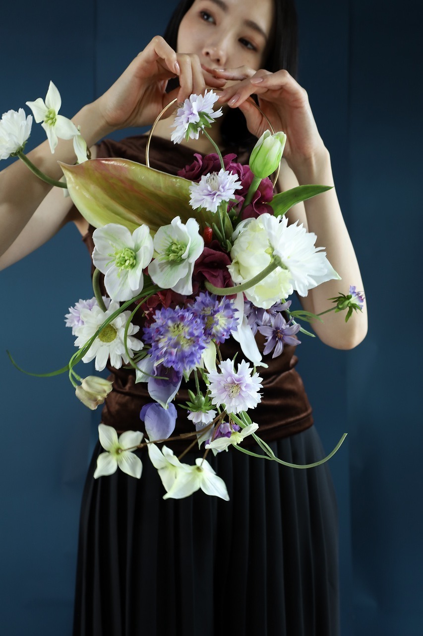 主役は、スカビオサの“動き”。茎のしなりと花の浮遊感を活かして、輪の中と外にリズムを散らしました。