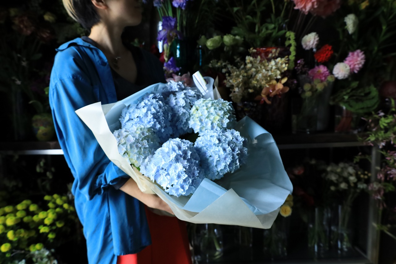 ・店主の目利きで、より良い状態のアジサイを選定します。